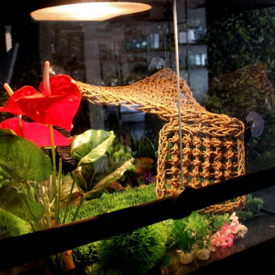 Hamak został wykonany z naturalnych wodorostów, jest on ręcznie tkany, miękki ale bardzo wytrzymały. Wodorosty są zdrowe dla twojego gada i przyjazne dla środowiska. Wiele domowych gadów uwielbia się wspinać, wtedy taki hamak stwarza im świetne miejsce do wypoczynku na wysokości, tym samym powiększając im przestrzeń życiową w terrarium. Hamak jest wyposażony w mocne przyssawki które go utrzymują do gładkich powierzchni, takie jak szkło, plastik itp.