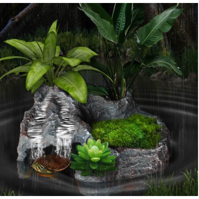 Kryjówka została zaprojektowana tak, by móc podłączyć pompkę z wodą by uzyskać efekt wodospadu. Dzięki temu można stworzyć warunki idealne dla twojego zwierzaka.