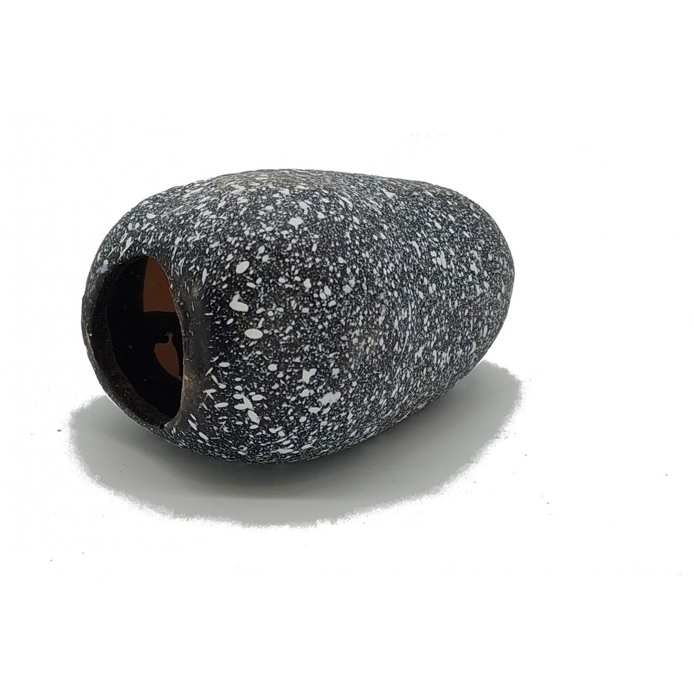 Kryjówka wykonana ręcznie z wysokiej jakości ceramiki. Dzięki niej zwierzęta nie są podatne na stres. Wpływa to pozytywnie na ich apetyt i aktywność. Naturalny wygląd z pewnością wkomponuje się w wystrój każdego terrarium i akwarium. Jej masywna konstrukcja uniemożliwia jej przesuwanie. Użyty materiał zwiększa wytrzymałość oraz ułatwia czyszczenie.