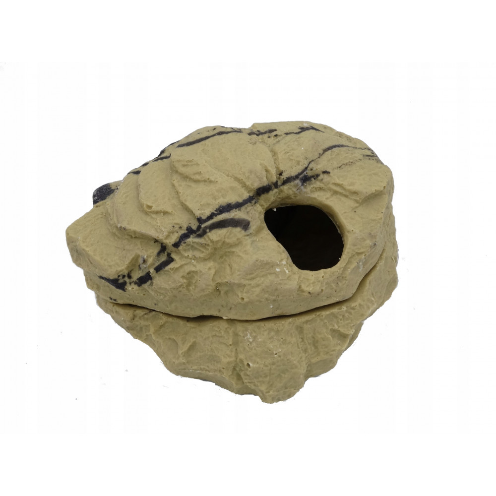 Duża kryjówka wykonana ręcznie z wysokiej jakości ceramiki. Dzięki niej zwierzęta nie są podatne na stres. Wpływa to pozytywnie na ich apetyt i aktywność. Naturalny wygląd z pewnością wkomponuje się w wystrój każdego terrarium. Jej masywna konstrukcja uniemożliwia jej przesuwanie. Użyty materiał zwiększa wytrzymałość oraz ułatwia czyszczenie.