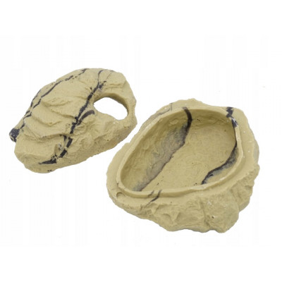 Duża kryjówka wykonana ręcznie z wysokiej jakości ceramiki. Dzięki niej zwierzęta nie są podatne na stres. Wpływa to pozytywnie na ich apetyt i aktywność. Naturalny wygląd z pewnością wkomponuje się w wystrój każdego terrarium. Jej masywna konstrukcja uniemożliwia jej przesuwanie. Użyty materiał zwiększa wytrzymałość oraz ułatwia czyszczenie.