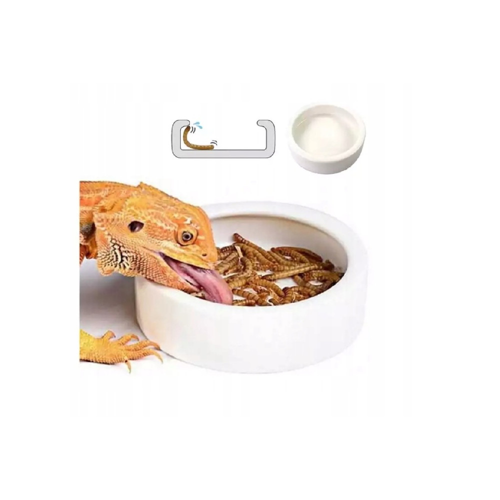 Idealna miska do karmienia gadów, płazów żywym pokarmem. Dzięki wysokim gładkim krawędziom oraz zaokrąglonym zakończeniem zapobiega ucieczce żywego pokarmu. Dzięki swojej uniwersalności idealnie nadaje się również jako miska na suchy pokarm