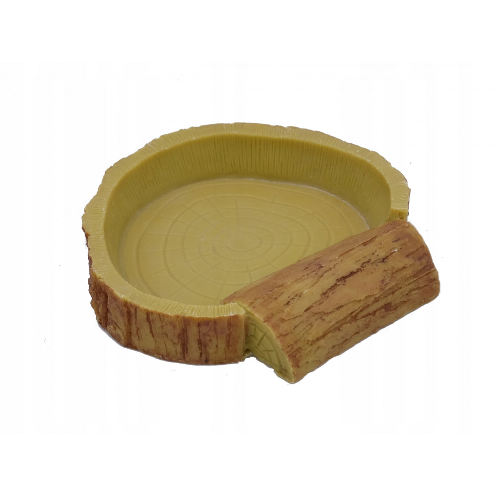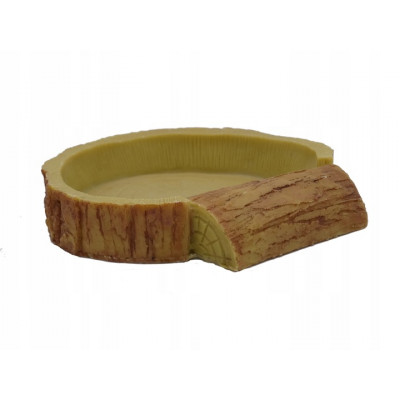 Miseczka imituje naturalne drewno przez co pięknie pasuje do terrarium pustynnego jak i tropikalnego.
