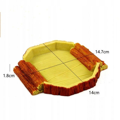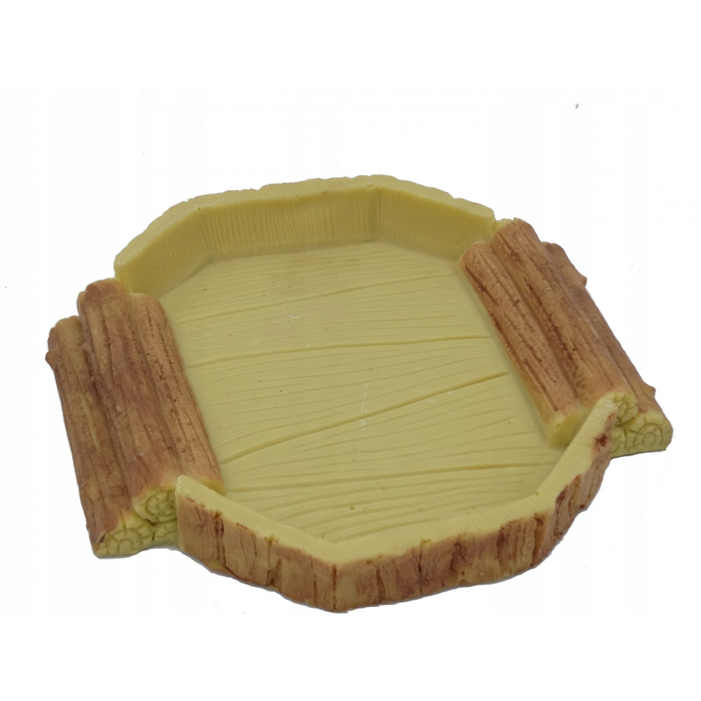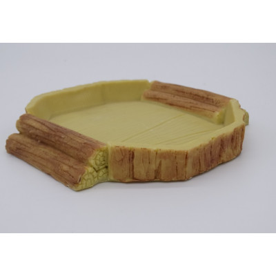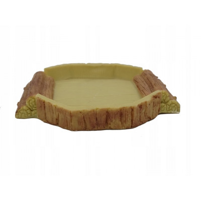 Miseczka imituje naturalne drewno przez co pięknie pasuje do terrarium pustynnego jak i tropikalnego.