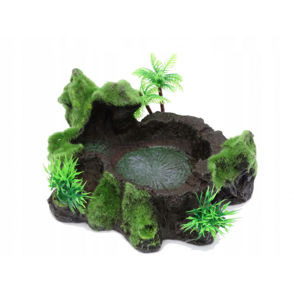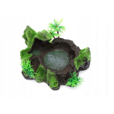 Miseczka imituje naturalne drewno przez co pięknie pasuje do terrarium pustynnego jak i tropikalnego.