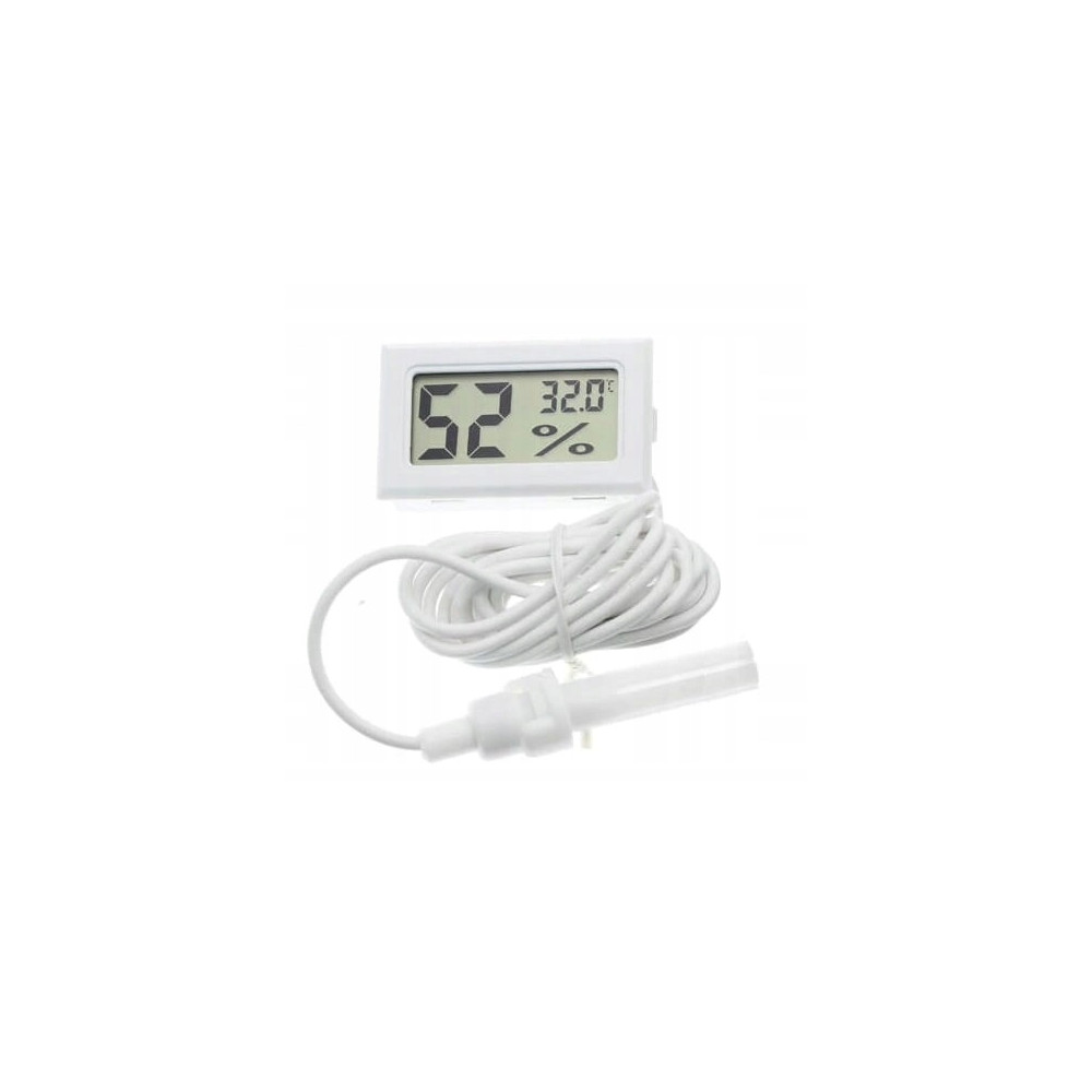 Elektroniczny higrometr z termometrem, sondą i dużym wyświetlaczem LCD - biały.